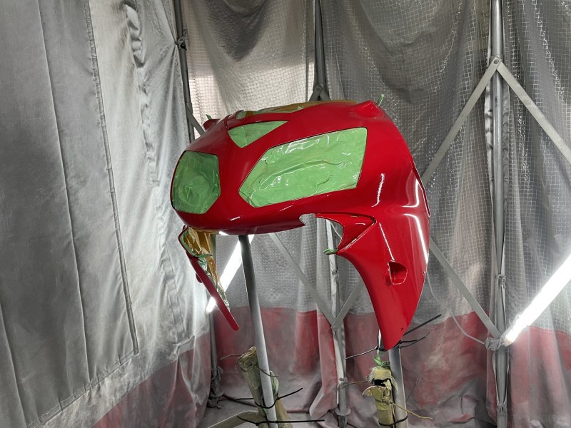 昨日塗装したバイクのカウルもクリヤーの質がイマイチだったので塗り直しました(^0^;)