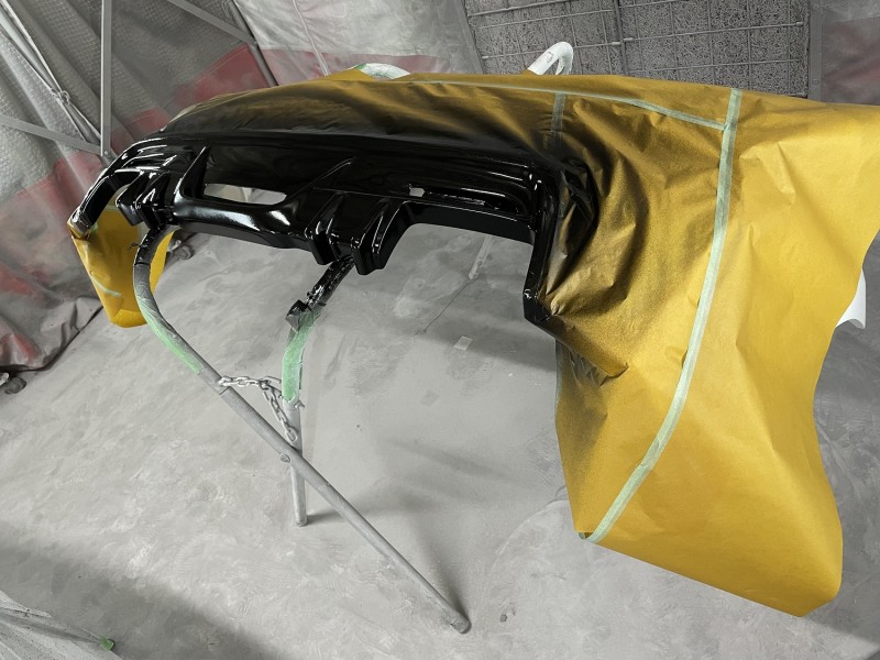 6/17はトヨタ ルミオンのフロントエアロバンパー、サイドステップ、リヤエアロバンパーの塗り分け塗装をしました。