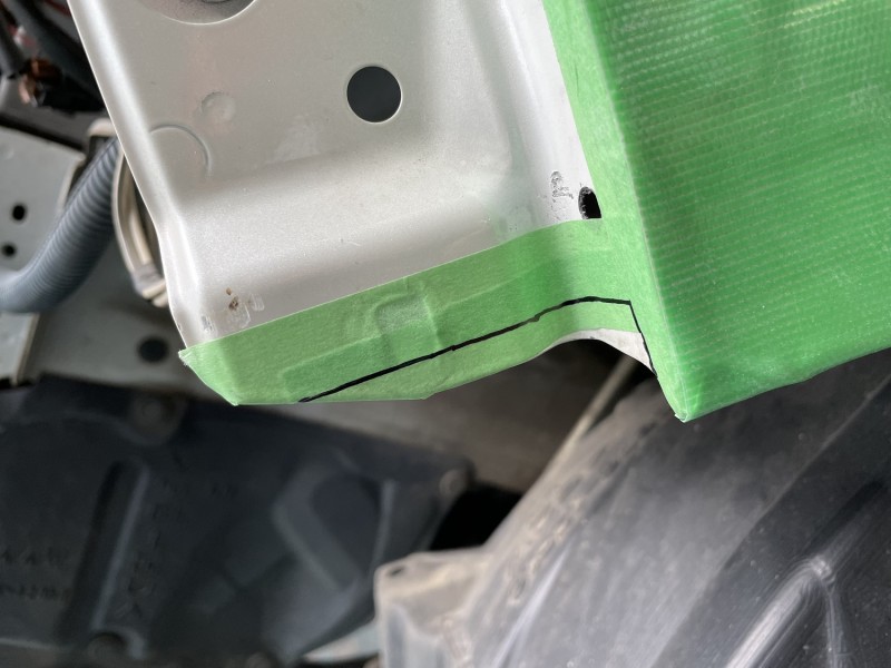トヨタ ルミオン フェンダーとフロントエアロバンパーの取付部加工 加工前