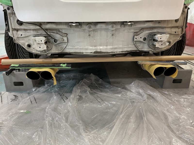今日はトヨタ ルミオンのフロントエアロバンパーの塗装、フェンダーとフロントエアロバンパーの取付部加工、マフラーの位置調整をしました。
