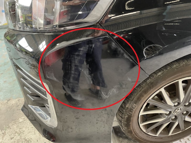 トヨタ ヴォクシー フロントバンパー破損(側面から) 入庫