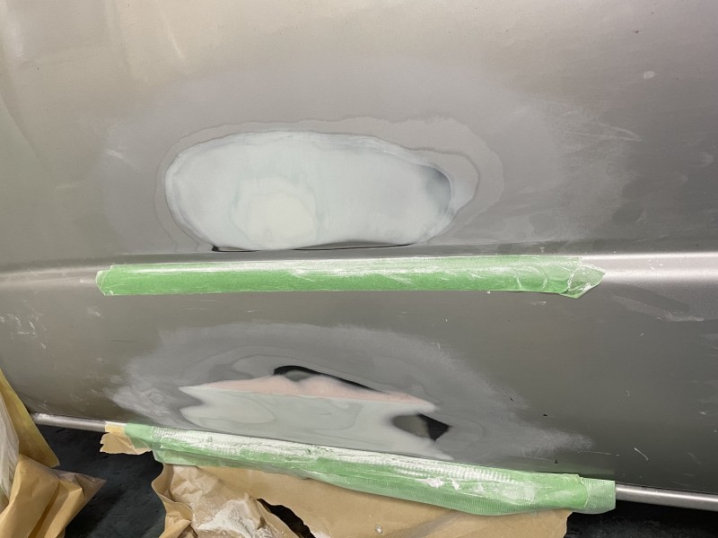 スライドドア、フロントドアも板金及びパテ処理までしました。