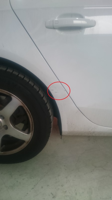 アウディ A4の補修塗装の作業をさせていただきました。右後ドア付近に打痕とスリキズです。リアバンパーにスリキズです。鈑金してから、パテをつけつけー①ペーパーで研ぎ研ぎしてから、パテをつけつけー②紙を貼...