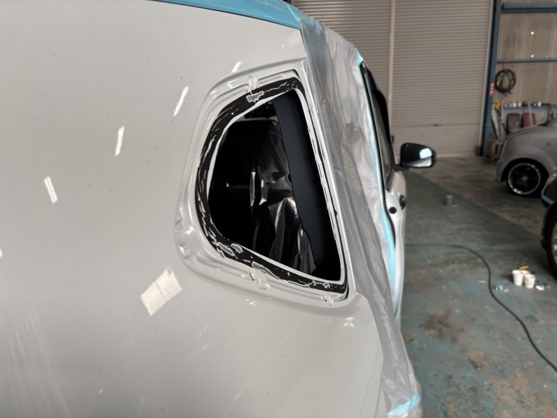 ホンダ フリードのクォーターパネル修理ということでクォーターパネル、スライドレールカバー、スライドレールが新品交換になるので塗装準備までしました。(^_^)vホンダ フリード クォーターガラス外し(ガラス...
