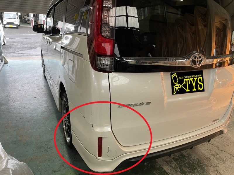 おはようございます、TYSのYです。トヨタ エスクァイアがリヤ廻り、フロントドアモールディング破損にて入庫したので投稿致します。トヨタ エスクァイア リヤ廻り破損 入庫トヨタ エスクァイア リヤ廻...