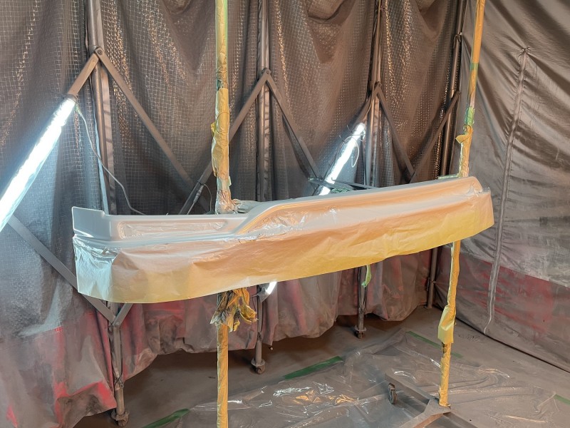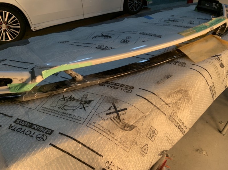 こんばんは、TYSのYです。今日は、プラスチック補修したトヨタ 30アルファード 社外フロントスポイラーを塗装しました。パールホワイトとブラックの塗り分けということで、今日はホワイトパールの塗装が完...