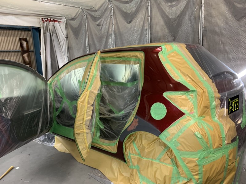 2020/10/26(月) 板金塗装修理ヴィッツ 左クォーター・左リアドア塗装