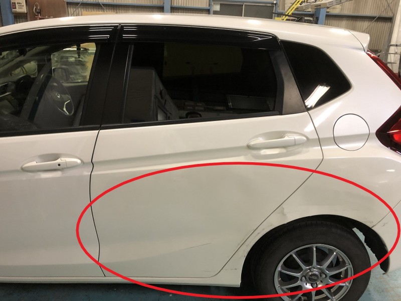こんばんは、TYSのYです。今日は日中外注さんの仕事をして、夕方に車をぶつけたという連絡をもらい現車確認をして即入庫しました。フィット 左リヤドア、左クォーター、リヤバンパー破損夜は常連さんが来店...