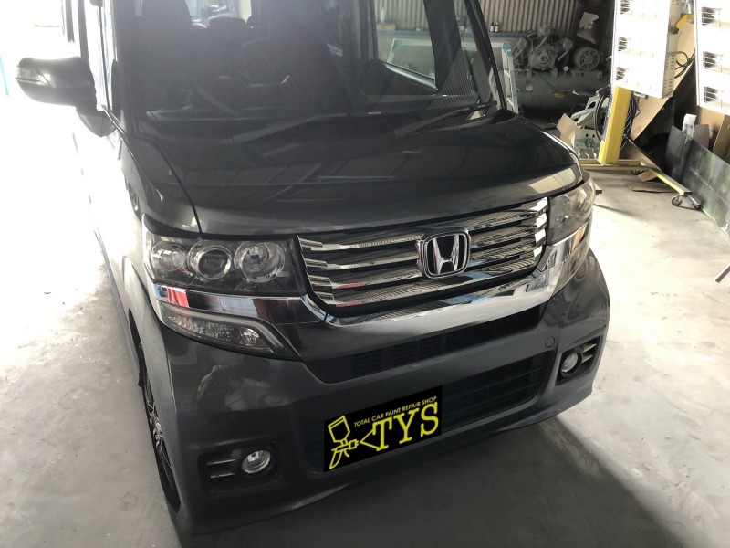 こんばんは、TYSのYです。過ごしやすい日が続いたと思ったら、また暑い日が・・・(+o+)まったく勘弁してほしいです(^_^;)今日はNBOX入庫しましたヽ(*´∀`)ノボンネット、左フロントフェンダー、フロントバンパー...