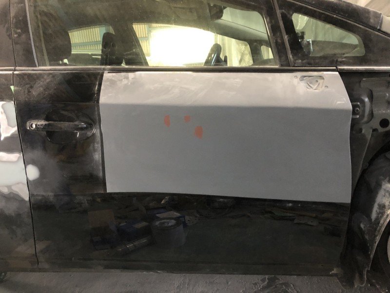 こんばんは、TYSのYです。今日は朝から部品発注や納期の確認など事務的な仕事を、お昼近くまでやって午後からプリウスの右Fドア、右Fフェンダーのサフェーサーを研ぎ、塗装するための準備(養生)などを夕...